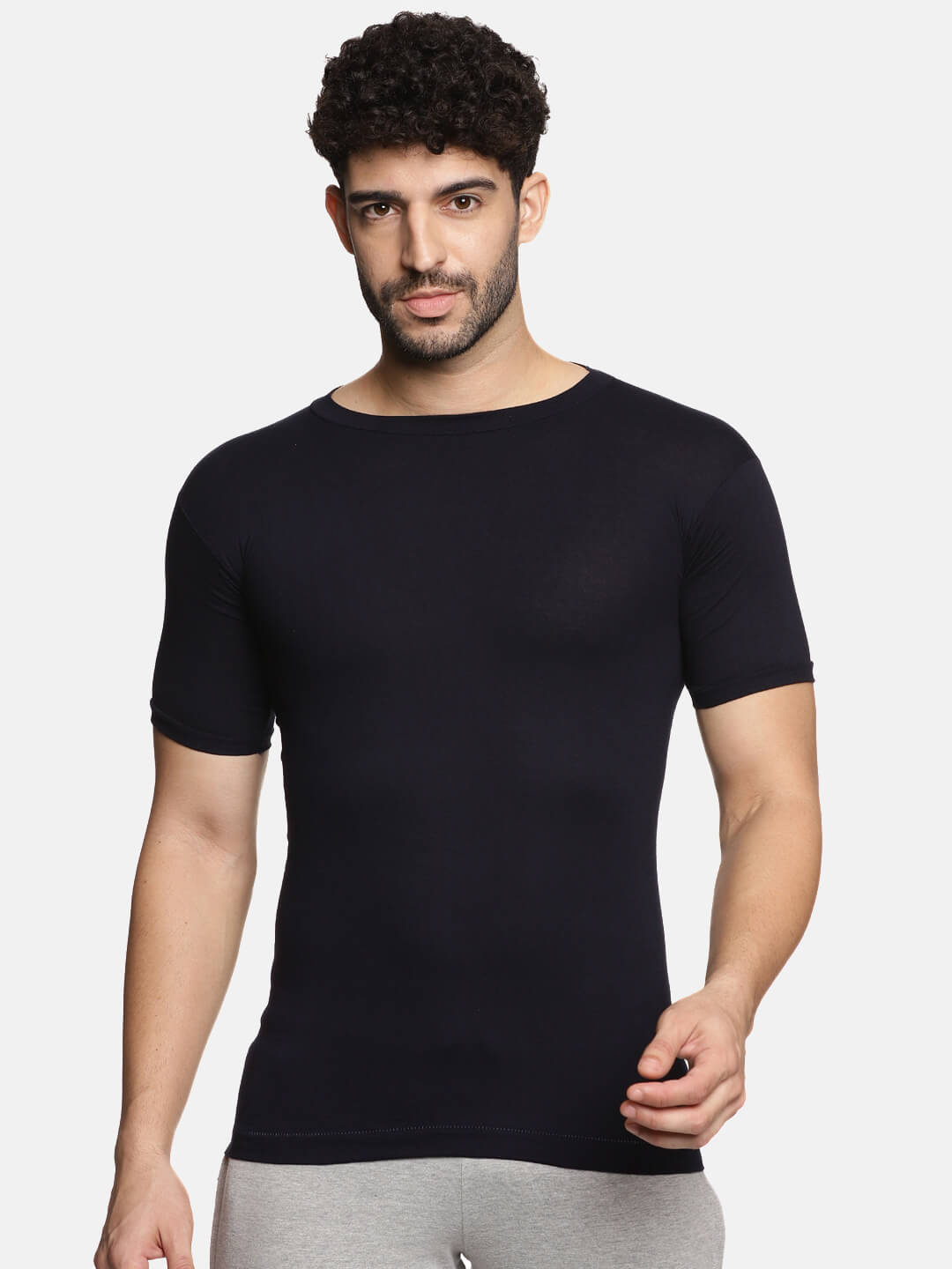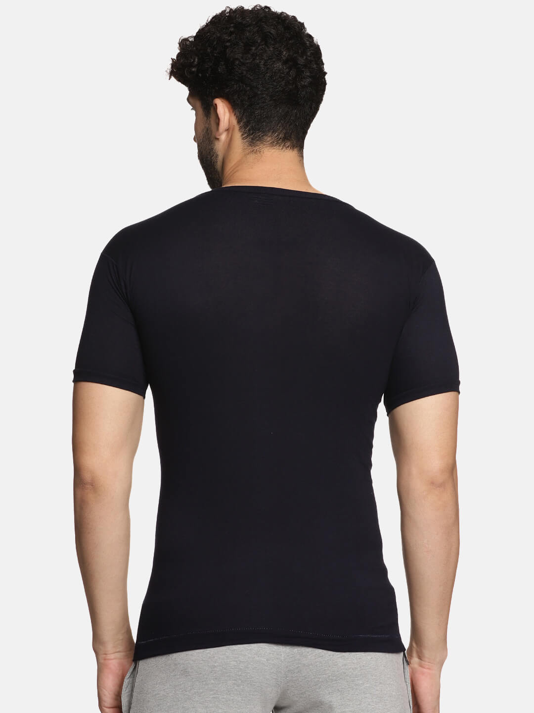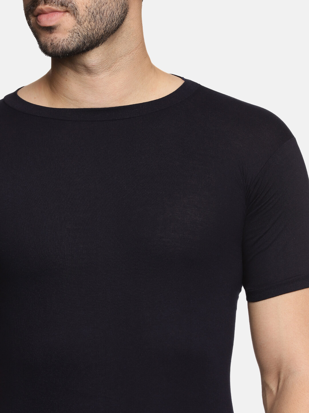 • Deep round neck with sleeves